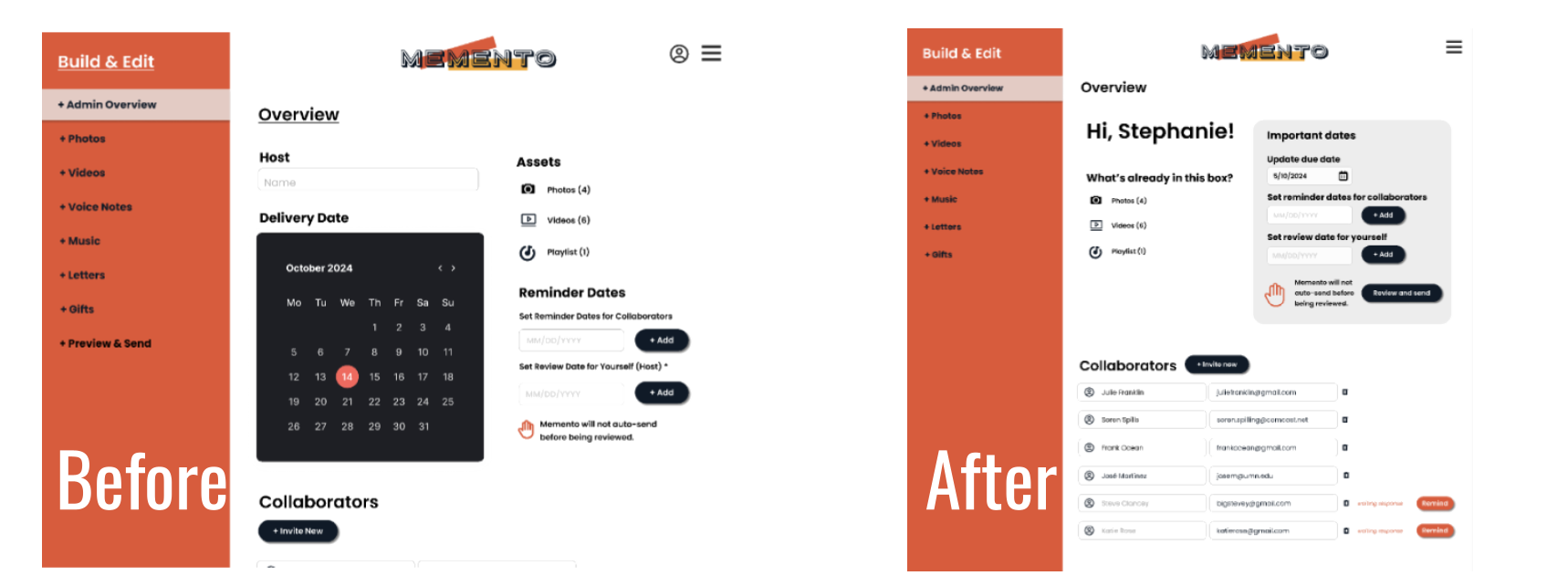 Memento is the next evolution of the established e-card model. It’s a platform for creating collaborative, digital gift boxes to share letters, personalized video messages, voice notes, playlists, photos and physical gifts with loved ones during significant life events.